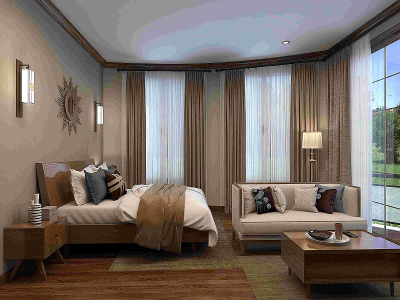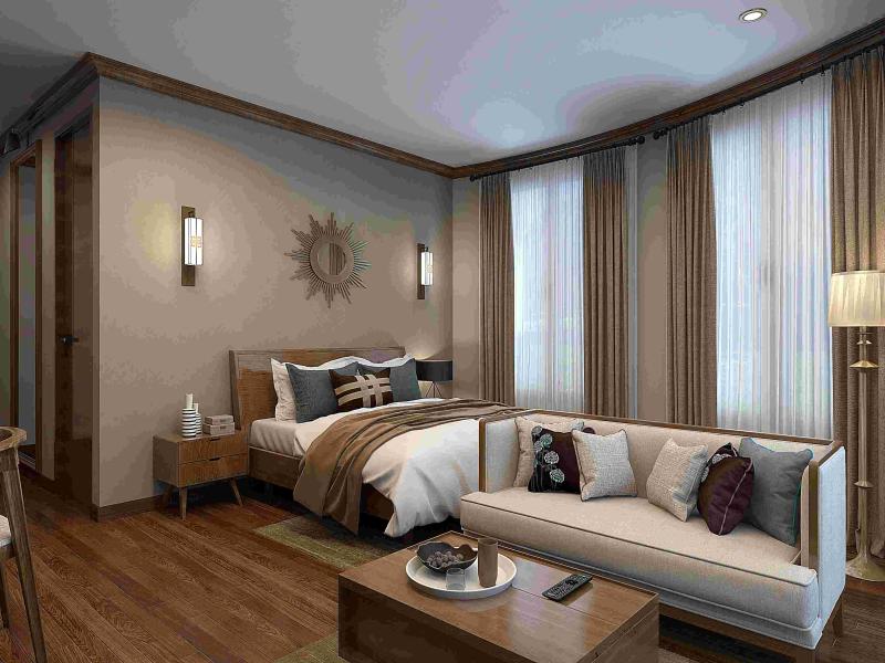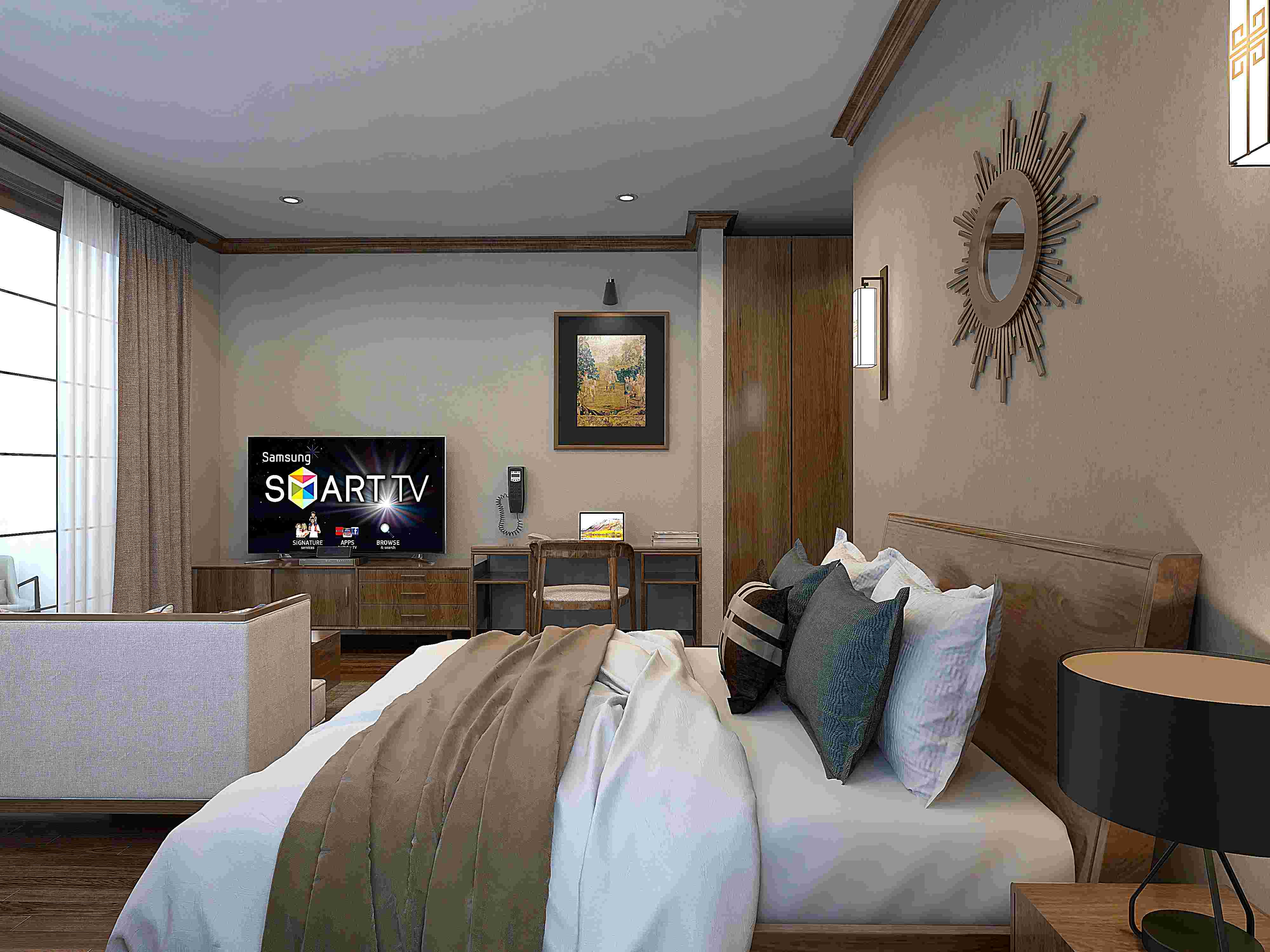 Hotel Room sample for 20room hotel, to the tropical climate area. Domination of natural wooden materials blend with the area and it gives timeless look.