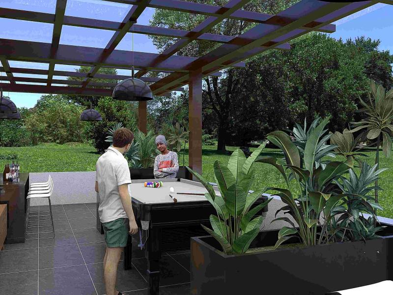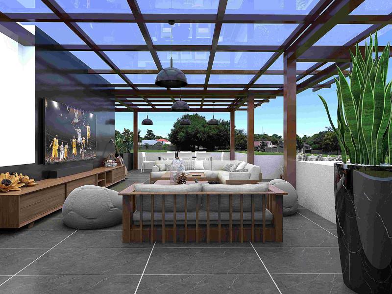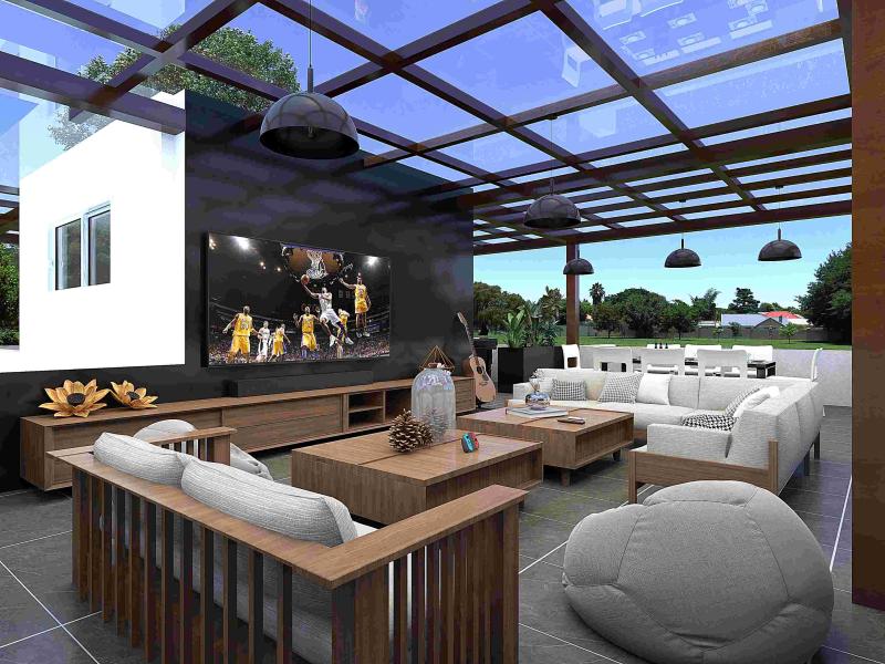 Outdoor area for chilling to get ocean breeze while having leisure activities like TV watching, Pool table,BBQ etc.