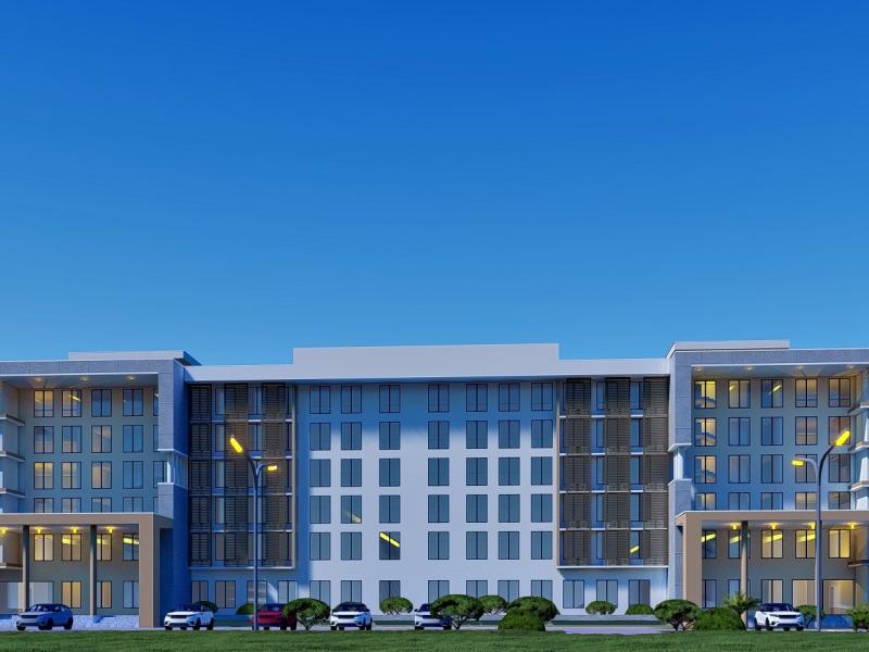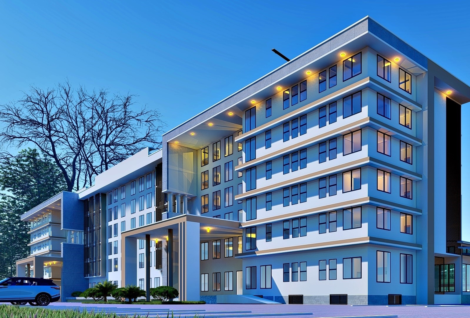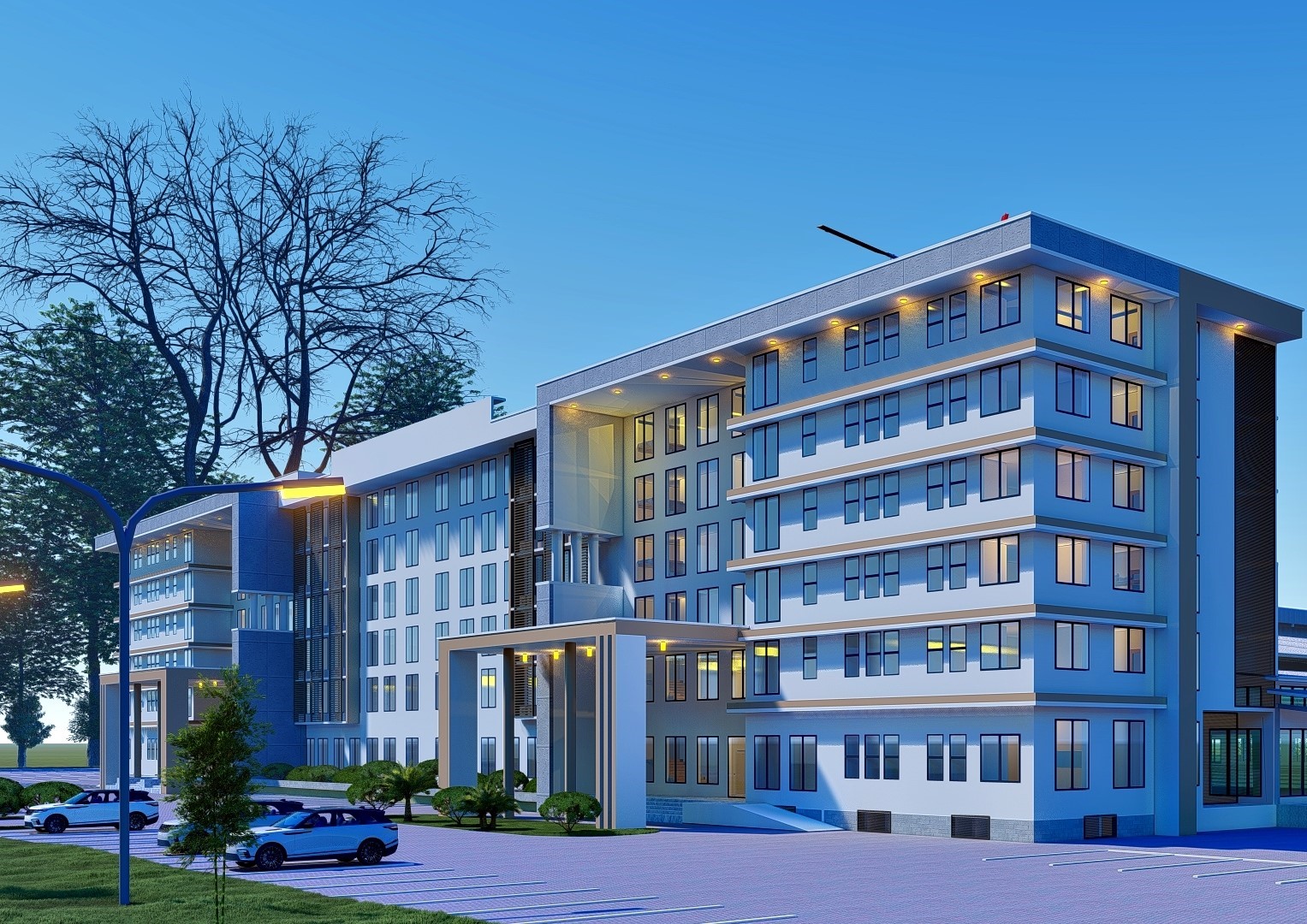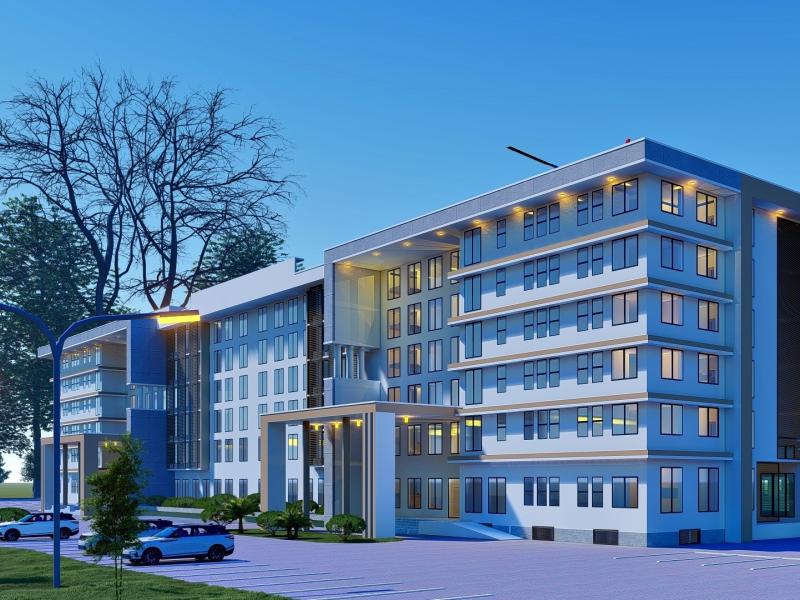Proposed symmetrical six storey office block to be built at Dodoma which accommodated Service core, Executive and normal offices, Seminar and Meeting rooms, and Mini restaurant.