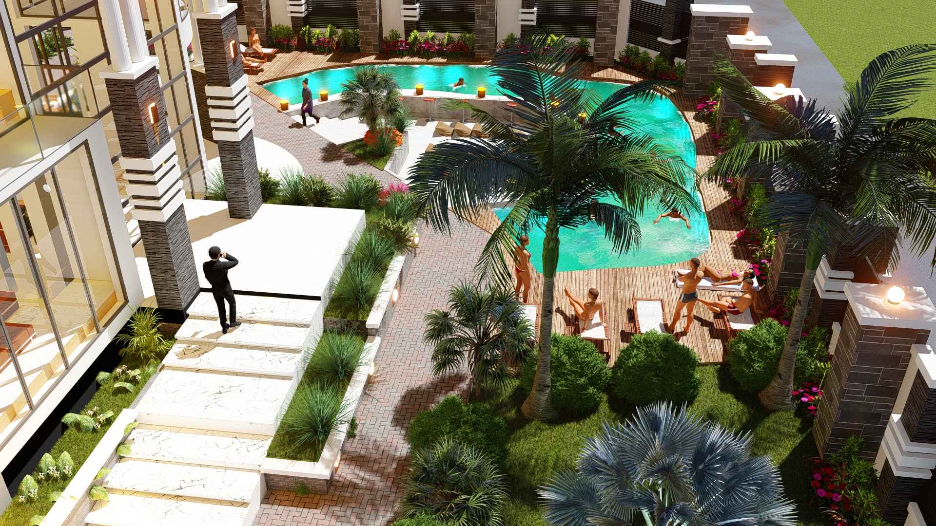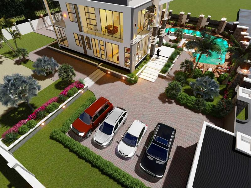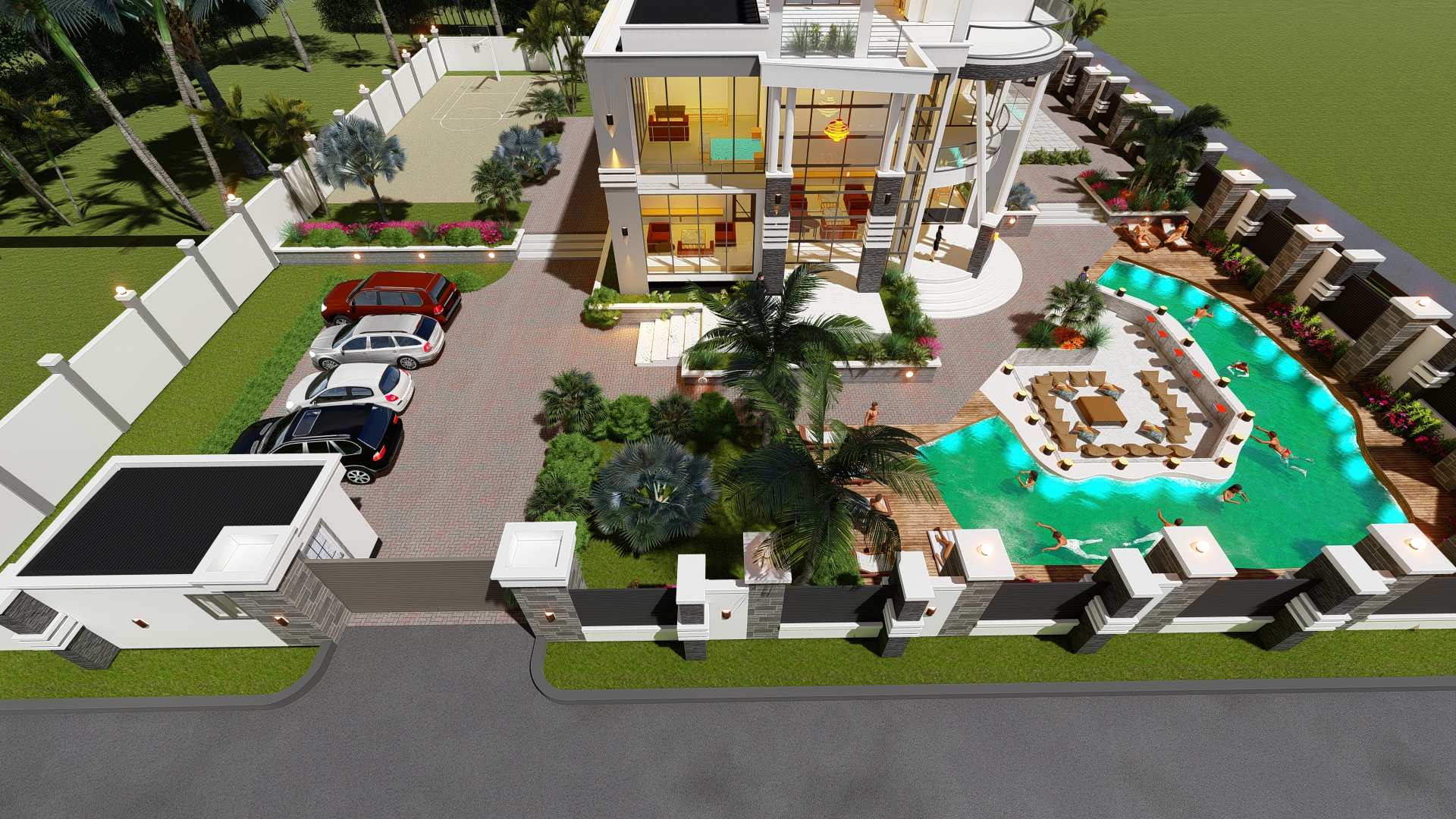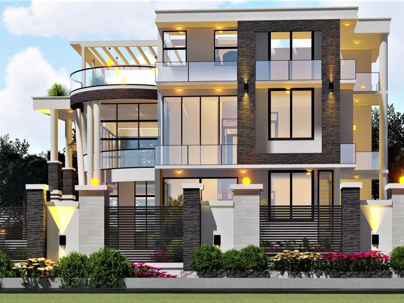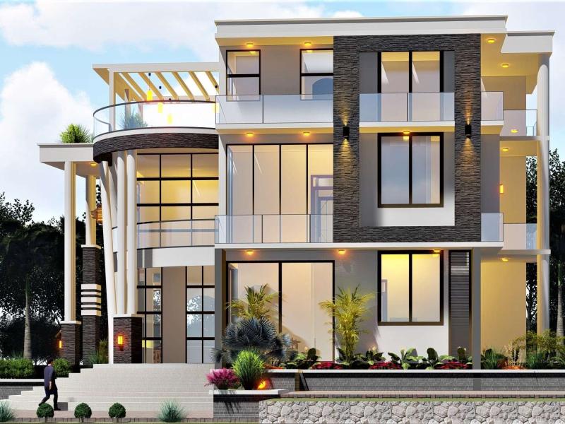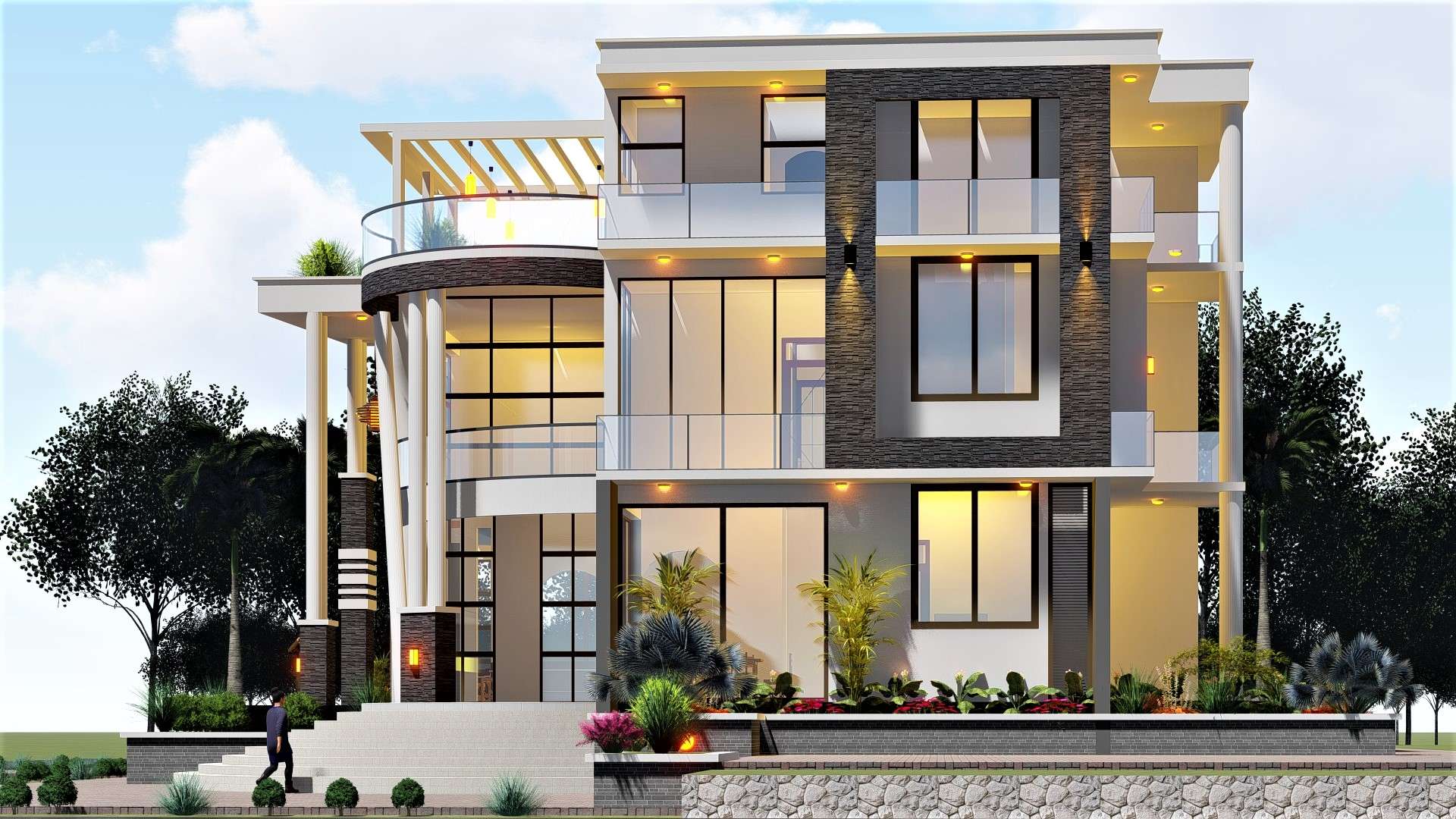 A Modern contemporary house design where glass take dominance externally which makes the whole design stand out. The uniqueness on this design is the giantism of columns to the entry and the slanting column.