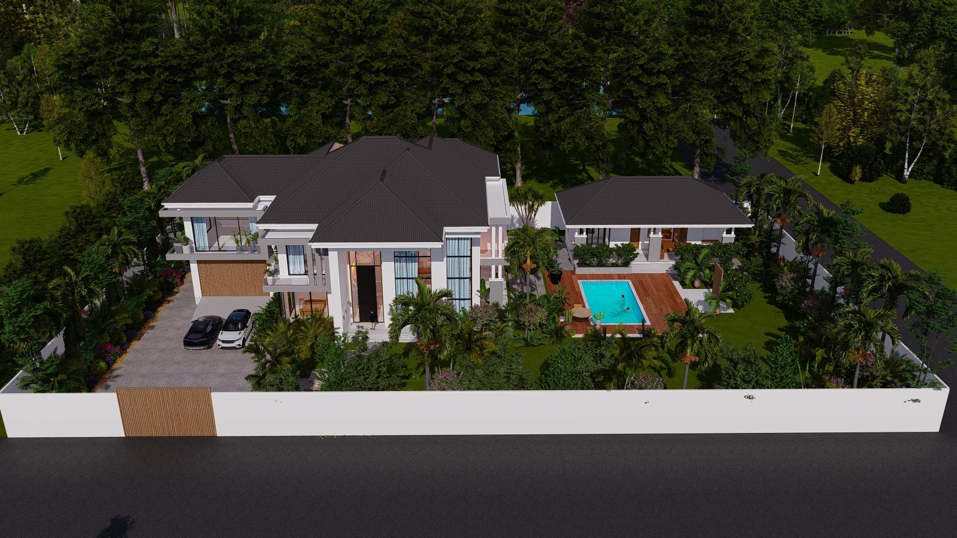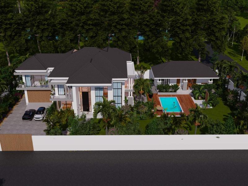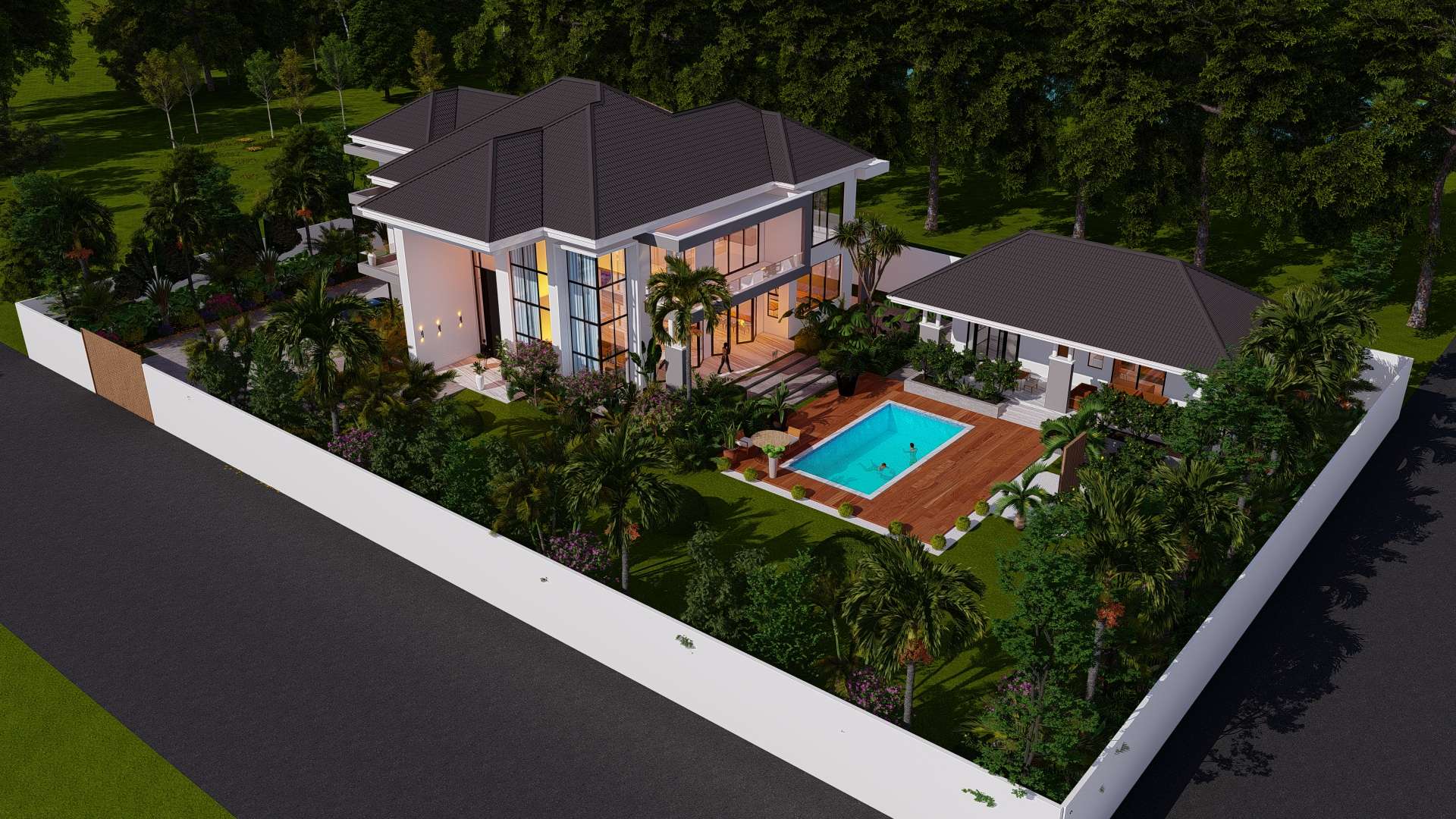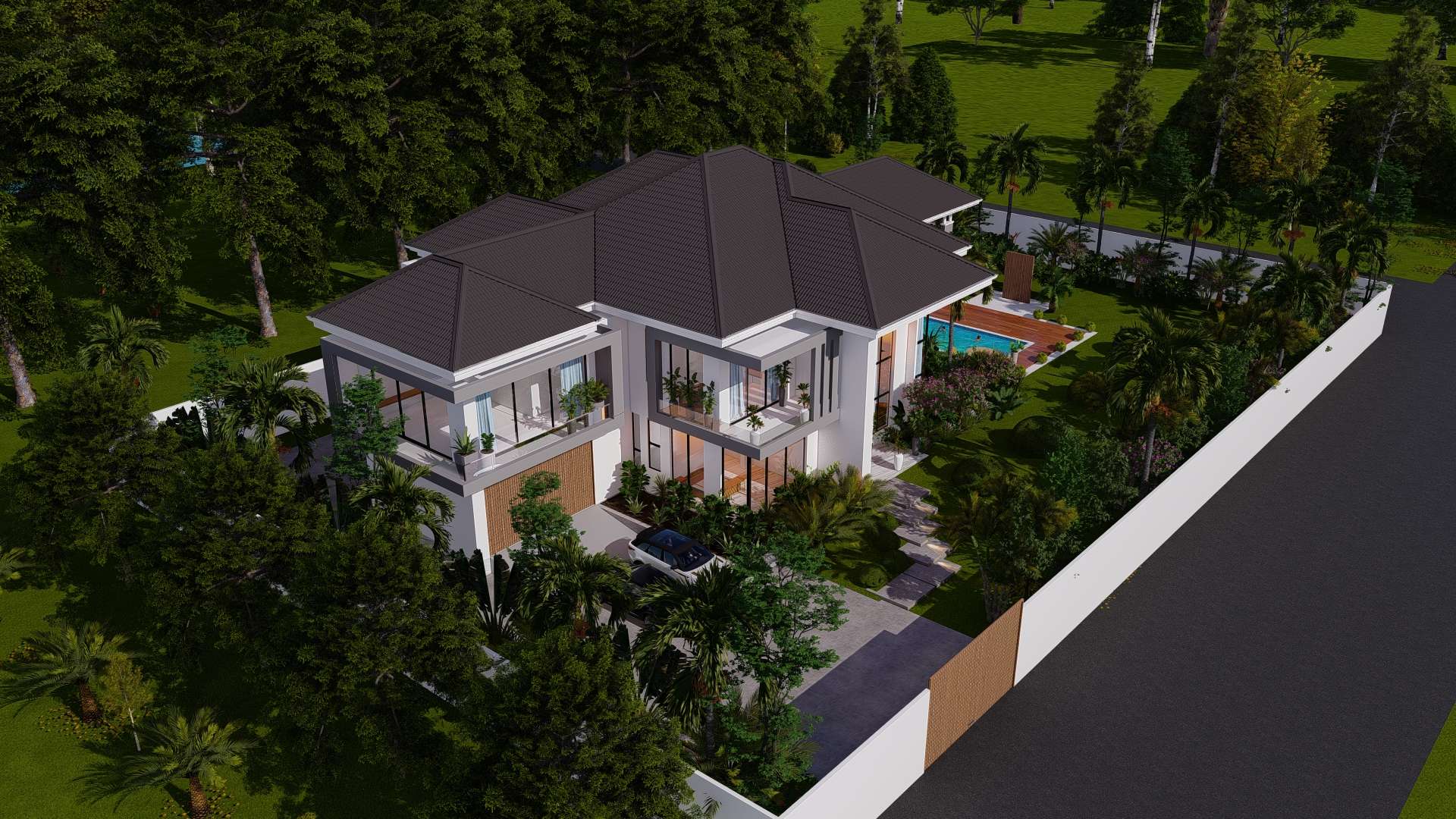 A unique double height lounge with a large glass facade windows around to add the beauty to this 5bedrooms and 4bathrooms residential house.